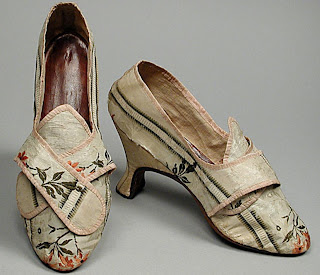 I've seen another passage from a contemporary letter which relates how a group of women chipped in on the cost of hiring themselves a master in shoemaking to come to one of their houses in order to give the group lessons on the art. Does anyone have any more information about this unique occupation? Victoria seems to think that the ladies worked on the decorative uppers, rather than actually constructing a shoe, but we'd be grateful for any information or research leads you can provide.